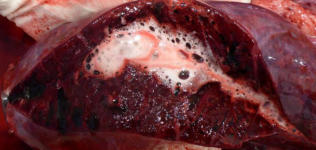 Schaum vor der Rüsselscheibe (hochgradiges Lungenödem)